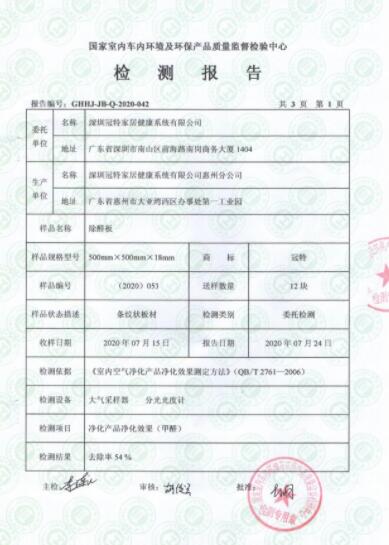 冠特除醛衣柜的除醛功能性還得到權(quán)威機(jī)構(gòu)國家室內(nèi)車內(nèi)環(huán)境及環(huán)保產(chǎn)品質(zhì)量監(jiān)督檢驗(yàn)中心的認(rèn)證。檢測(cè)的出冠特除醛板材去除率達(dá)54%。這將大大減少甲醛的釋放源,從而減少甲醛污染,消費(fèi)者可以放心地把衣物都放置在冠特除醛衣柜中,不必?fù)?dān)心會(huì)損害身體健康。