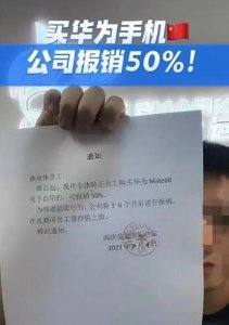 一公司鼓勵員工買華為 報銷一半費用!據(jù)報道,公司員工宋先生稱該通知屬實,公司雖然有20多人,但有部分是尚未開單的非正式員工,正式員工只有五六人。 之所以規(guī)...