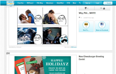 CheezBurger:互聯(lián)網(wǎng)搞笑圖片分享平臺是一個類似于國內(nèi)的煎蛋、糗事百科、暴走漫畫的搞笑分享類網(wǎng)站,成立于2007年;Cheezburger為地球貢獻(xiàn)了萌貓(LOLCats),杯具...